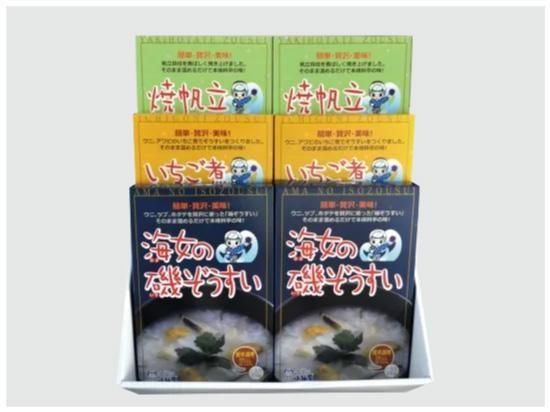 内容量:海女の磯ぞうすい 250g ×2・いちご煮ぞうすい 250g ×2・焼帆立ぞうすい 250g ×2